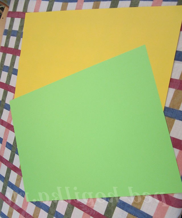 Папір можна брати будь-яку: звичайну кольорову або кольоровий папір для офісу (але з нею важче працювати). Я взяла офісний папір зеленого і жовтого кольору.