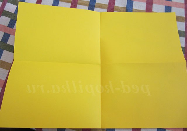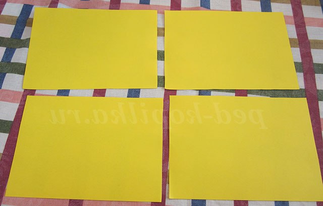 Приступаємо до виготовлення квітки. Ділимо аркуш жовтого паперу на 4 частини.