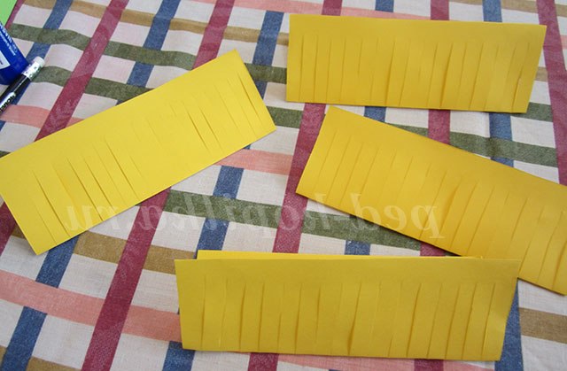 Тепер кожну частину складаємо навпіл і робимо надрізи ножицями не доходячи до краю на 2-2 .5 див.