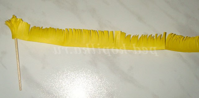 3. Нарізаю бахрому. Чим тонше ви ріжете, тим пухнасті квітка.