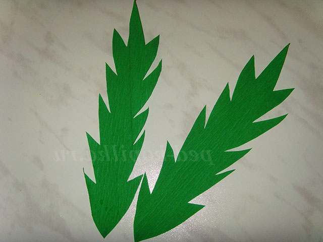 7. Вирізаємо з гофрованого зеленого паперу листочки для квітки.