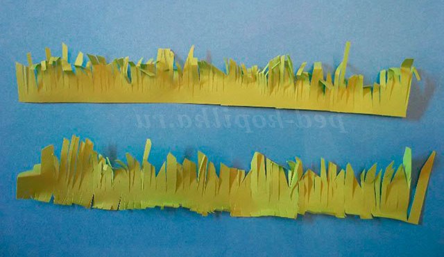 12. Внизу забору розміщуємо смужку зеленого кольору розрізану, як травичка.
