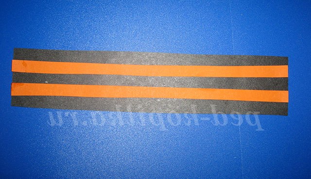 * наклеюємо помаранчеві смужки через рівну відстань.