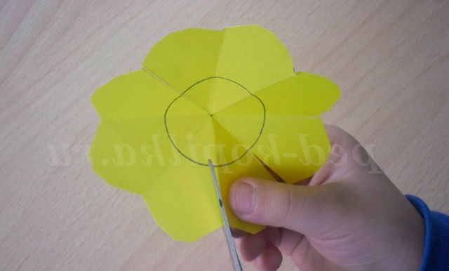Далі знадобиться шаблон пелюстки. Обвести контур шаблону на трикутнику. Акуратно вирізати.