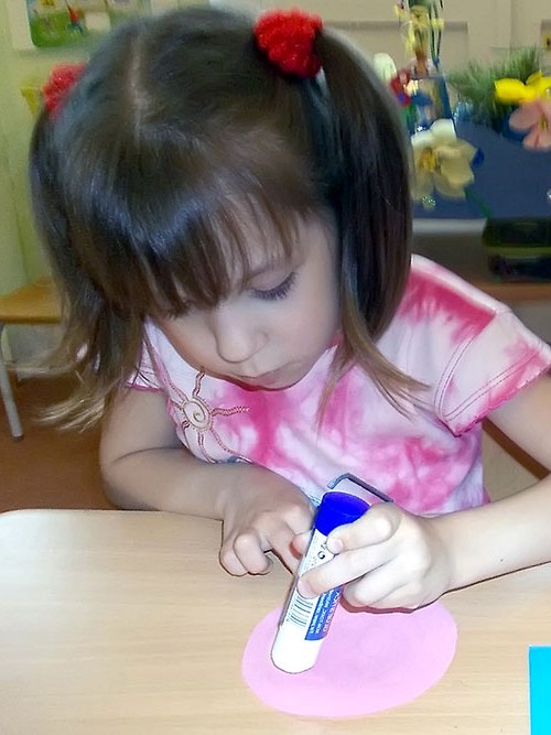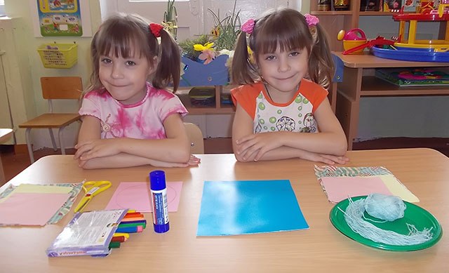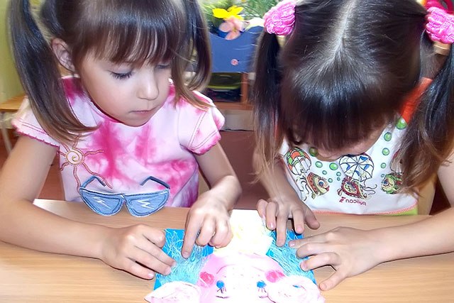 3. Беремо кольорові серветки, звертаємо трубочкою, а трубочку звертаємо по спіралі і приклеюємо у вигляді віночка на голову «Веснянке».