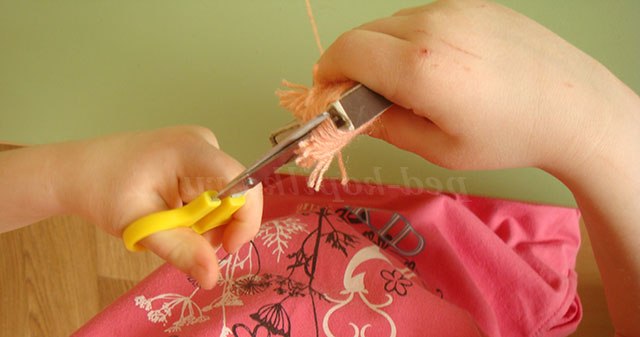 6. Потім ми розрізаємо нитки по зовнішній стороні з одного боку.