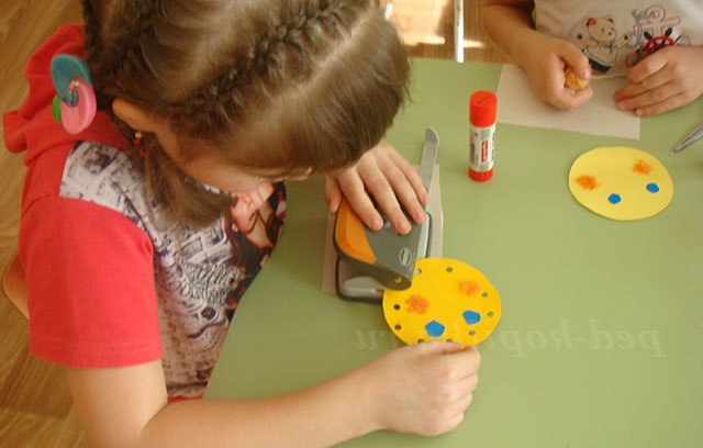 7. По краю жовтого кола робимо діркопробивачем отвори.