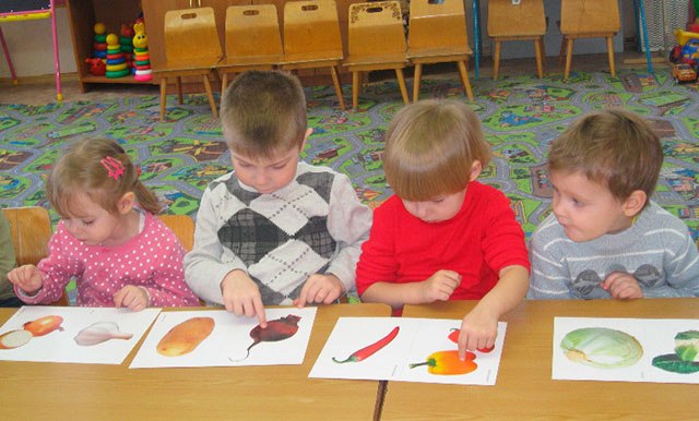 Вихователь: молодці хлопці все правильно розклали! А ви хочете, щоб наші овочі збереглися взимку? Для цього треба їх законсервувати в банки. Сідайте швидше за столи і заповнюйте банки овочами. Хлопці, а які овочі ми будемо консервувати?