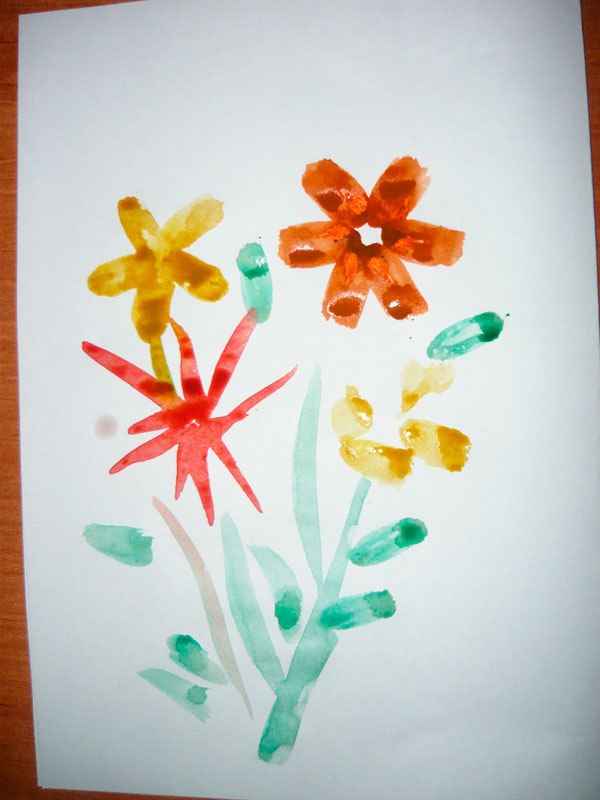 Педагог: Правильно, тут квіти різні. А давайте намалюємо свої квіточки.