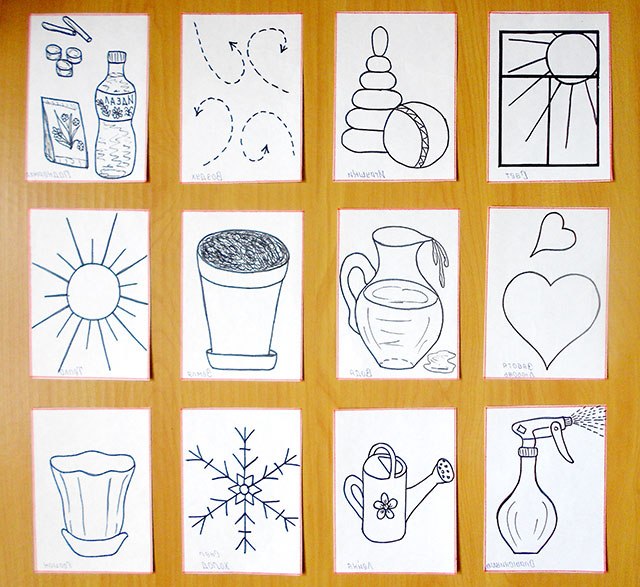✓ картки-схеми із зображенням предметів і дій, необхідних для росту і розвитку кімнатних рослин;