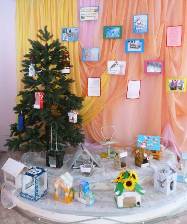 - А зараз, діти, я пропоную вам подивитися виставку годівниць, яку для вас підготували батьки.