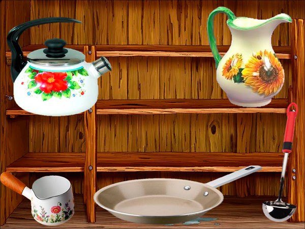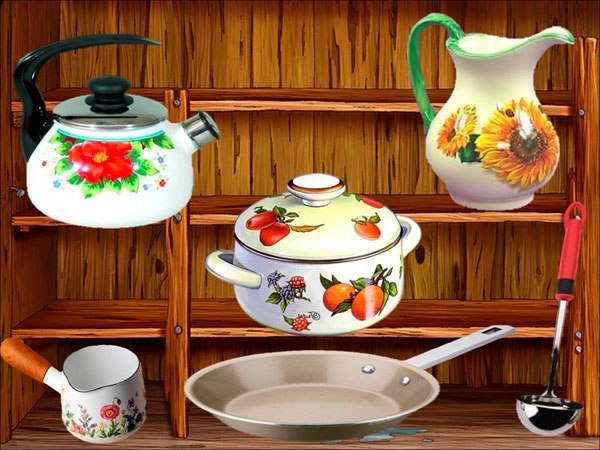 - Ця посуд потрібна на кухні, значить вона яка? (кухонні)
