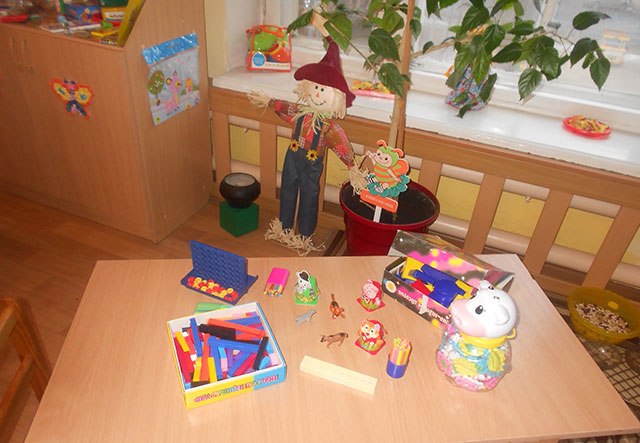 1. Створити умови організації видів діяльності (ігрової, комунікативної, трудової, пізнавальної, продуктивної, музично - художньої) навколо теми «В гостях у Бабусі - Забавушки» у самостійній діяльності дітей.