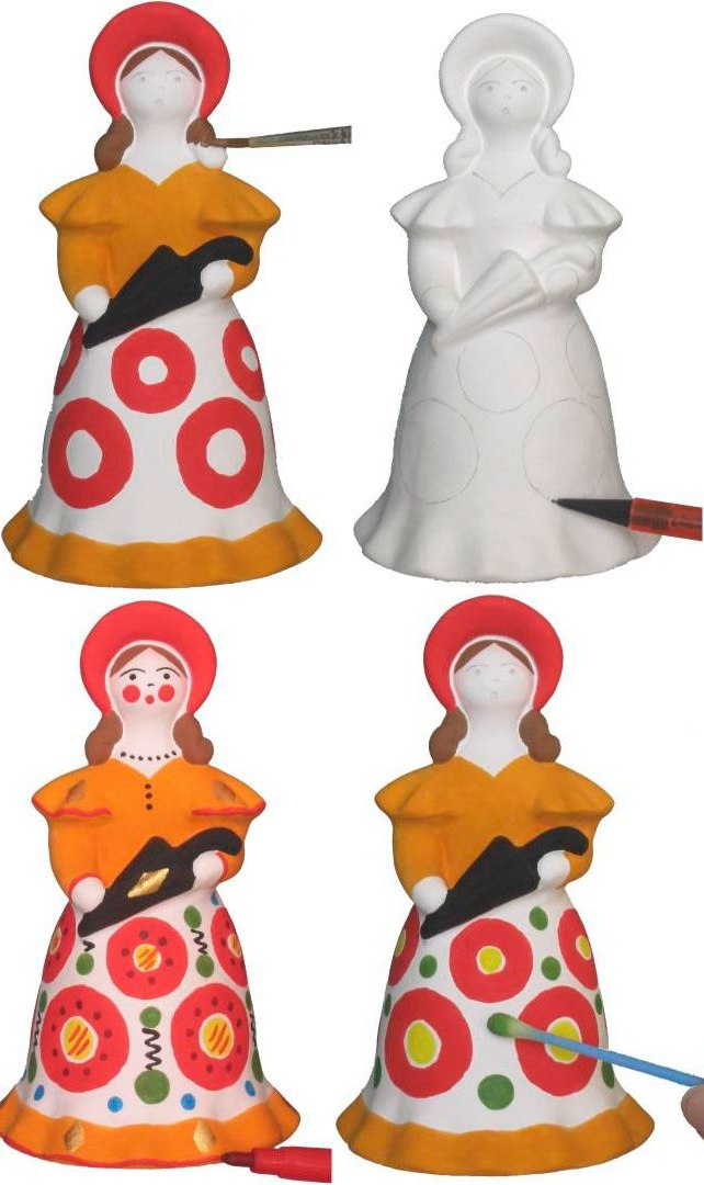 Ви знаєте, що таке димковская іграшка, з чого вона робиться і де виник цей промисел? Димковская іграшка - один з російських народних глиняних художніх промислів. Виник в зарічній слободі Дымково поблизу р. Вятка (нині на території р. Кірова). Такий іграшки як димковская більше немає, вона одна така. Яскрава, святкова димковская іграшка стала своєрідним символом Вятської землі. Найчастіше використовуються такі сюжети як няньки з дітьми, водоноски, барани з золотими рогами, індички, півні, олені і, звичайно, молоді люди, скоморохи, барині. На дошці висять картинки з елементами дымковской розпису. Дымковскую іграшку розписують (елементи): гуртками, кільцями, смужками, змійками. Кольори використані в дымковской іграшці це (стандартно): червоний, оранжевий, жовтий, малиновий, синій, блакитний, смарагдовий, зелений і в дуже невеликій кількості коричневий і чорний. Що означали елементи, які я вам показувала (на картинках)? Хлопці, як ви думаєте що, на вашу думку, міг означати коло? (Сонце), а як ви думаєте, що могла означати хвиляста або ламана лінія? (Воду). А що ж могла означати клітина? (Поле) Кожне зображення, що використовується в серпанку це передача природи довкілля людини У дымковской іграшки є свої кольору є свій орнамент своя форма, яка надає іграшці індивідуальність, що робить її схожою на інші іграшки. Зараз я вам роздам листи, і ви підготуєте фарби і ми будемо малювати дымковскую панночку. На цьому занятті ми з вами будемо малювати, і використовувати елементи дымковской розпису в нашій роботі. Зараз ми з вами спробуємо намалювати елементи димки окремо: - Діти малюють візерунки дымковской іграшки (візерунки на фартух і т.д.). У дітей на аркуші намальований шаблон димки. Перед вами на дошці висять елементи розпису дымковской. Так само ви тільки що спробували намалювати ці елементи. Ви повинні прикрасити Панночку цими елементами. І так приступайте до роботи. Вихователь ходить по класу дивиться, як малюють діти, допомагає їм, відповідає на запитання. |
