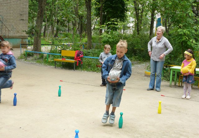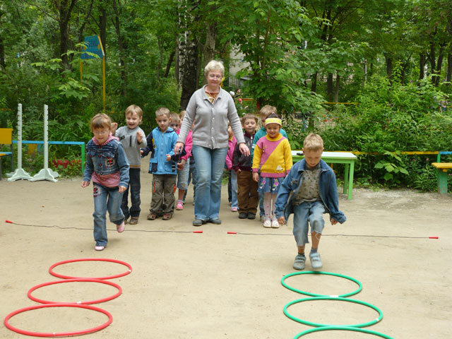 Вихователь: Молодці, хлопці, все перестрибнули через струмок. Ніхто не замочив ніг?