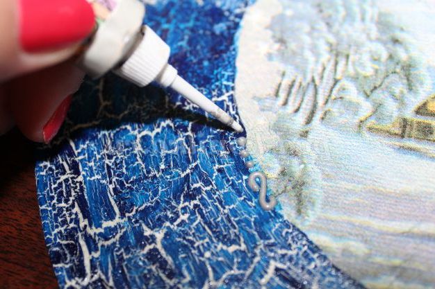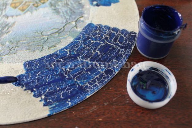 Обережно не заходячи на серветку покриваємо кракелюрную основу акриловою фарбою.