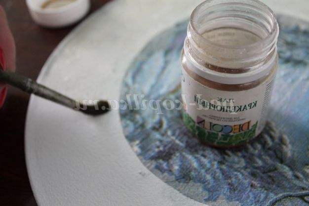 Готуємо основу для декупажу, заляпываем пластинку водоемульсійною фарбою.