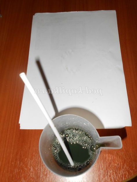 4.Берем трубочку і видуває бульбашки,укладаємо їх на альбомний аркуш,що б вийшов відбиток.