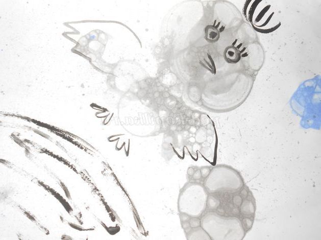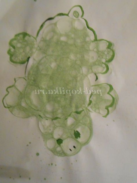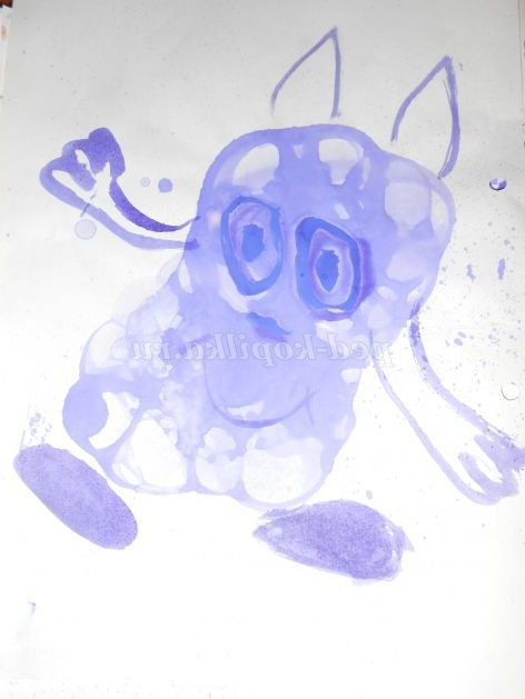 5.Полученный відбиток від бульбашок трохи підсушуємо і домальовували пензликом до образу,який кожен бачить по своєму.