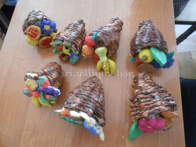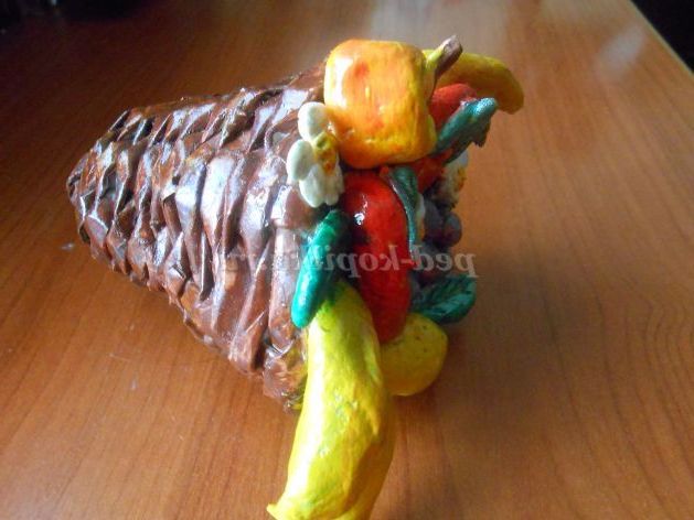 Сувенір своїми руками: ріг достатку з газетних трубочок з фруктами з солоного тіста