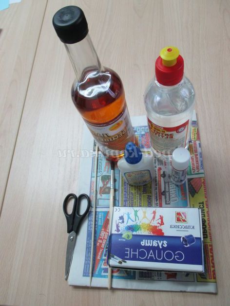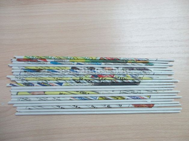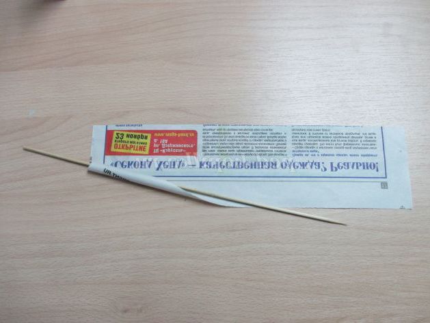 Матеріали для роботи: газети, спиця або дерев'яна шпажка, клей, гуаш, пензлик, безбарвний лак, ножиці.