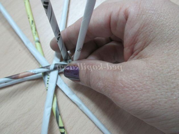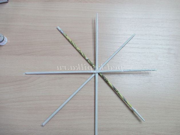4.Начинаем плетение.Выкладываем основу з 5-6 трубочок у вигляді сніжинки.