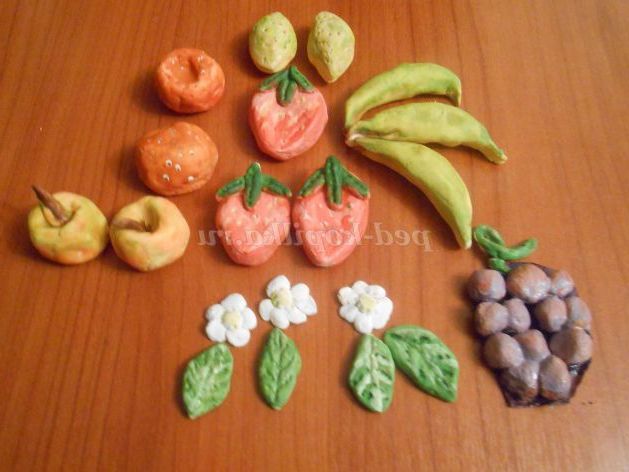 2. Виліплює фрукти,овочі,квіти,листики.Высушиваем на рівній поверхні 3-4 дні.