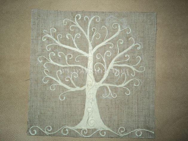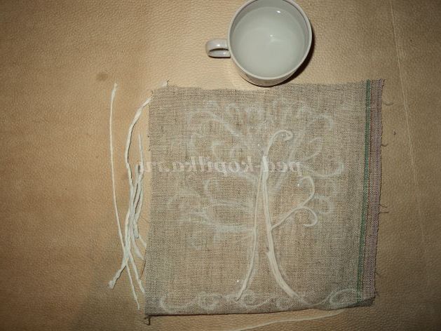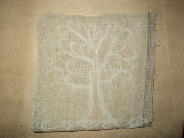 Беремо картон і приклеюємо на нього полотно. Олівцем малюємо дерево.