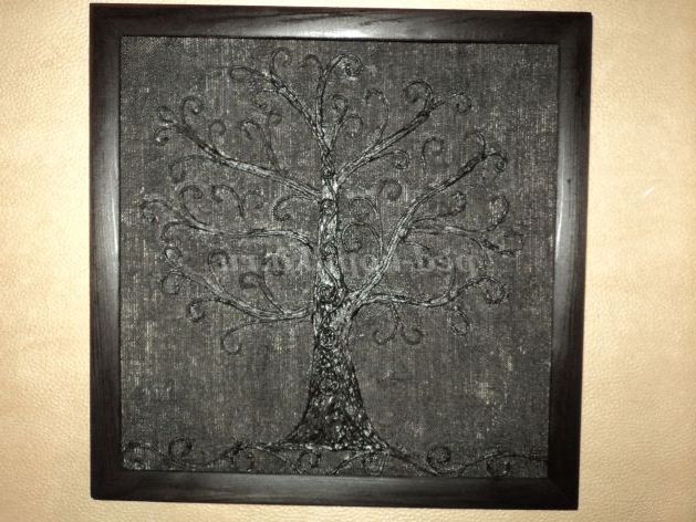 Потім змочуємо паперовий джгут у воді, віджимаємо , розправляємо , підкручуємо і приклеюємо спочатку стовбур дерева, гілки .Приклеиваем джгутики клеєм ПВА щільно один до одного, щоб фон не просвічував.
