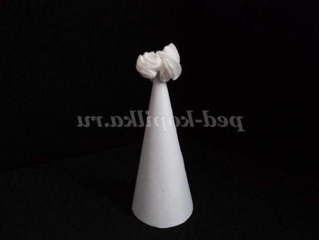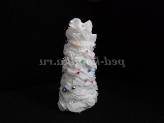 З картону робимо конус-основу нашої ялиночки, і починаючи зверху приклеюємо наші ватяні диски.