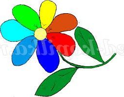 (Діти вибирають із запропонованих пелюсток: червоного, зеленого, коричневого, синього, малинового, чорного, оранжевого, фіолетового кольорів і збирають їх квітка)
