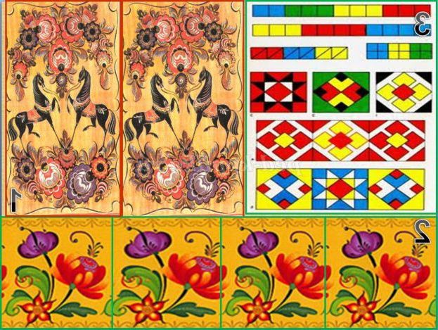 (Демонстрація зразків геометричного і рослинного орнаментів)