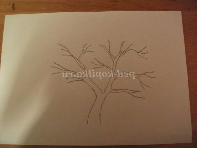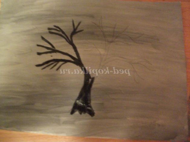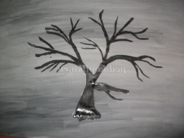 4.Дождавшись, поки фарба підсохне, обводимо дерево чорною фарбою.