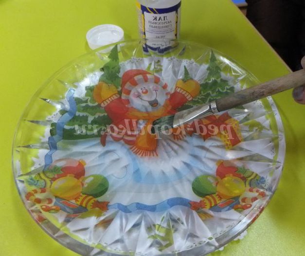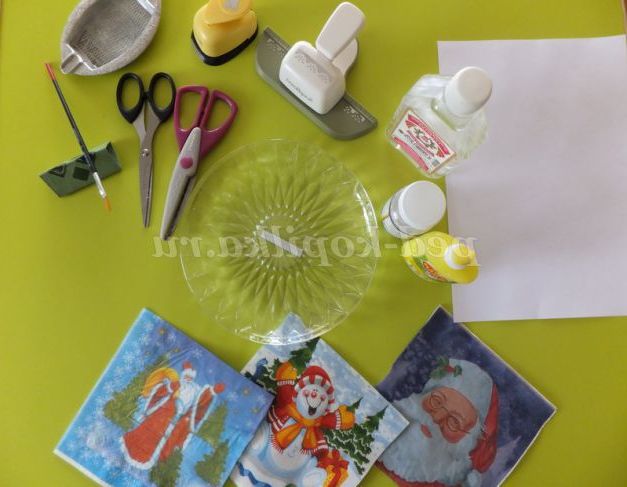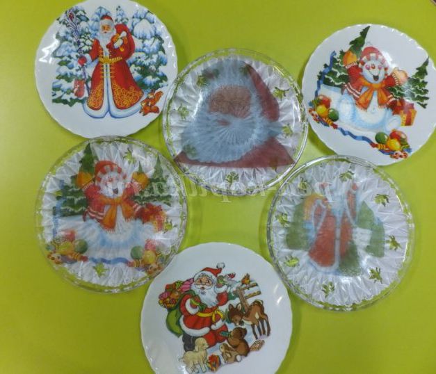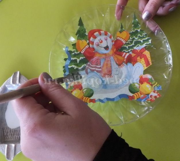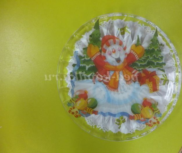 Новорічний декупаж тарілочки. Майстер-клас з покроковими фото