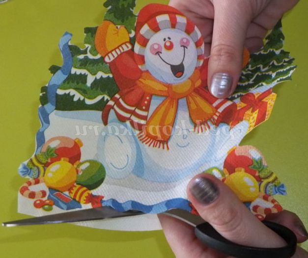 7.Следующий крок - вирізаємо з приготовленої серветки новорічний орнамент.