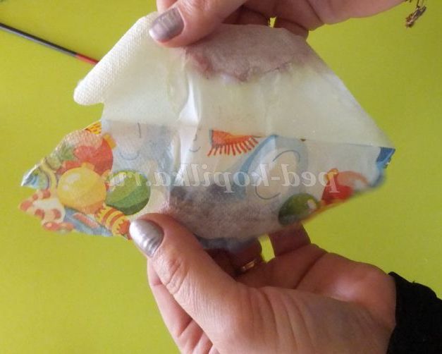 8. У тришарової серветки відокремлюємо нижні два шари.