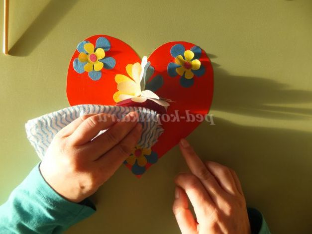 і приклеюємо їх обличчям до обличчя по краях сердечка.