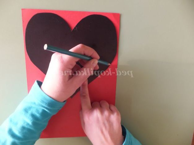 1. Обводимо за шаблоном сердечко на червоному картоні і вирізаємо її.