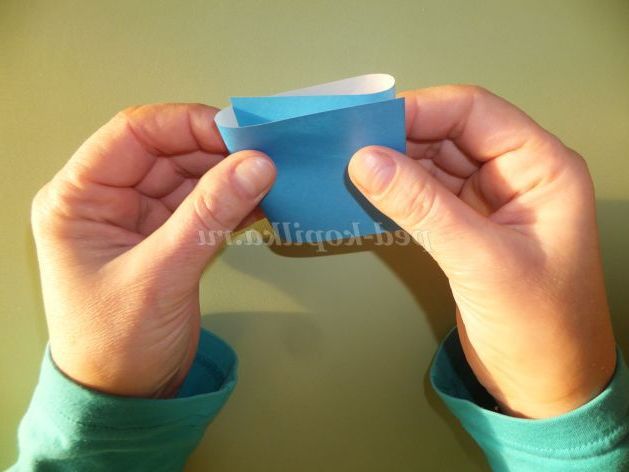 5.Складываем синій квадрат по діагоналі 3 рази.