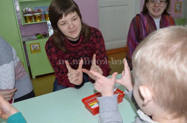 Уважно розглянути букву. Скласти її з пальчиків однієї руки або двох рук одночасно. Можна також скласти букву з двох пар рук (з участю дорослого або ще однієї дитини). Стежити, щоб елементи букви були повернені в потрібну сторону.