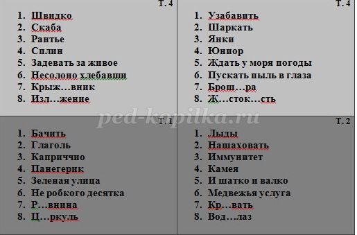 (Представлено 8 варіантів карток. Буква Т. - означає будь те словника Даля треба покласти на стіл дітям). «рис.3.jpg», «рис.4.jpg»