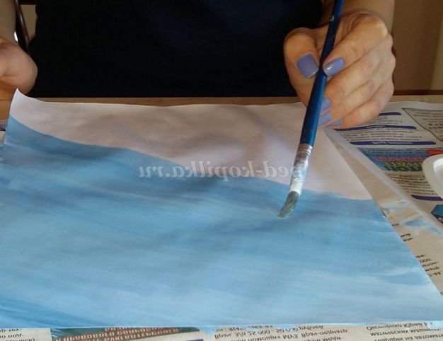 2.Предварительно завдавши на аркуш паперу воду, починаємо задавати фон.