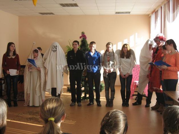 Тепер для вас як і годиться на святі - традиційні різдвяні ігри. Те, без чого на Різдво не можна обійтися. На сцену виходять по три людини від класу.