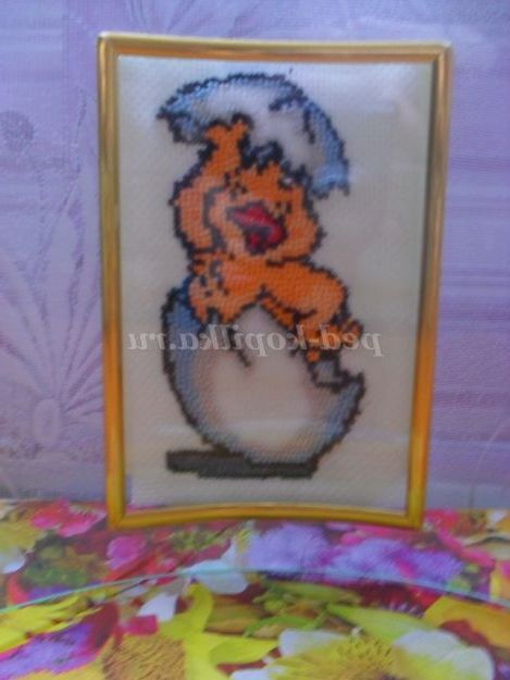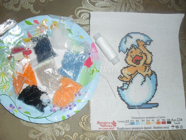 Майстер-клас з вишивки бісером. Картинка-подарунок "Пасхальне курча"