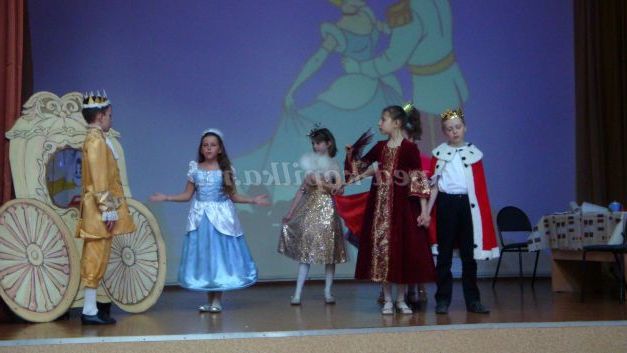 Ведучий звертається до глядачів: Здрастуйте, хлопці сьогодні ми пропонуємо вашій увазі театралізовану постановку відомої казки Шарля Перо «Попелюшка» англійською мовою. Перед вами виступлять учні 3 і 3 Г класів нашої школи.