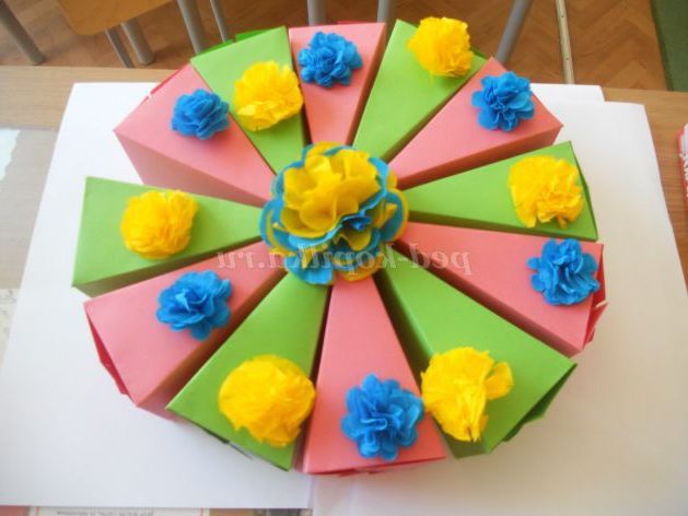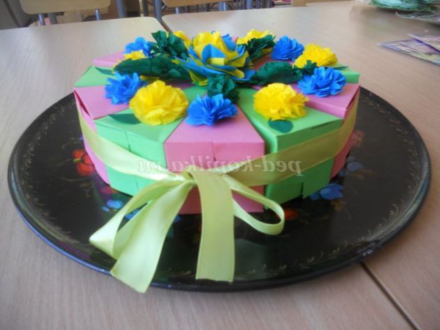 Майстер-клас покрокового виготовлення вироби з кольорового паперу "Випускний торт"