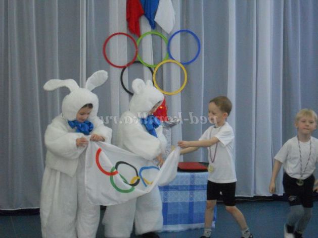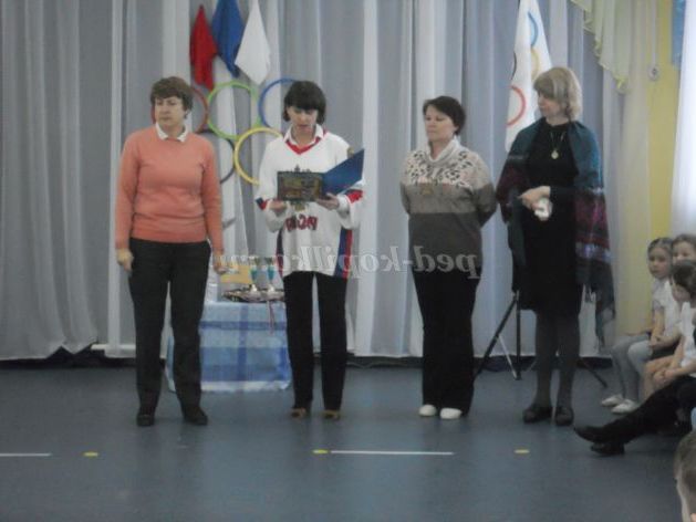 І ось сама довгоочікувана олімпіада. Все було по-справжньому: відкриття олімпіади, підняття прапорів, запалення олімпійського вогню і, звичайно ж, самі змагання. Змагання проводилися протягом тижня з різних дисциплін: фігурне катання (для цього спеціально на території дитячого садка , залили ковзанку), біатлон (замість стрілянини кидали мішечки з піском у ціль), лижна гонка - естафета, хокей. За кожну перемогу діти отримували зірочки. Ми зібрали 16 зірок, чим дуже пишалися. Наприкінці тижня суддівська комісія підвела підсумки, які були озвучені на закритті олімпіади. Закриття олімпіади, із-за негоди , проводили в залі, але від цього свято не став менш урочистим.