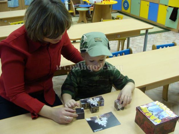 Вам знадобляться старі непотрібні кубики, які знайдуться в будь-якій групі, листівки з видами вашого міста( 2 примірники) .Обклеив кубики, ви побачите, яка проста і цікава гра у вас вийшла. Для молодших дітей обов'язково треба використовувати зразок, старші дошкільнята можуть впоратися самостійно. Завдання дітей - зібрати картинку і розповісти, що на ній зображено.