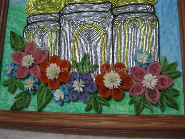 Наші квіти і листя, зроблені у техніці «квілінг», викладаємо до «ногам» Храму. Готове панно кріпимо до рамки