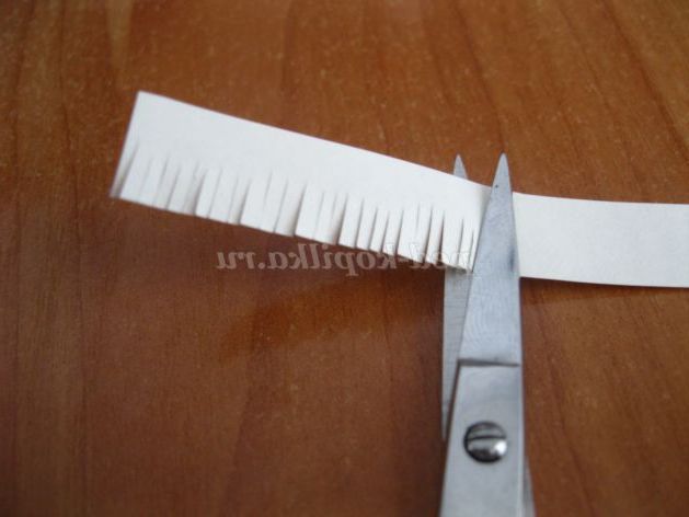 У кожної квіточки, є серединка, так сказати тичинки. Наші тичинки виходять з смужки паперу жовтого кольору. Дрібно нарізаємо по краю смужки - тичинки